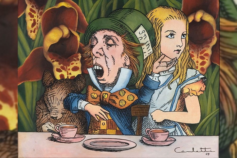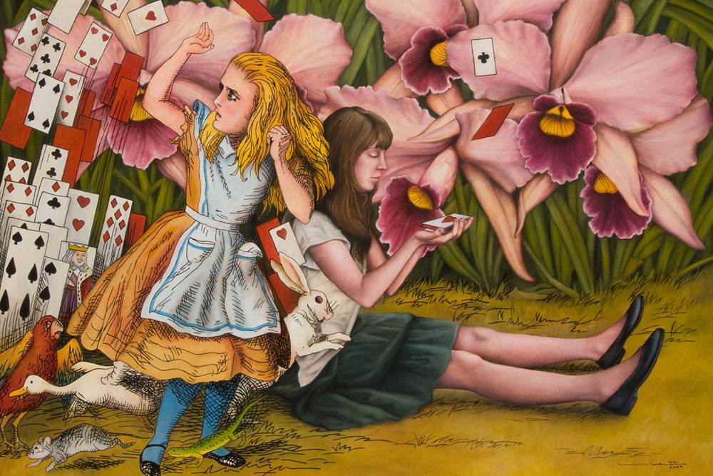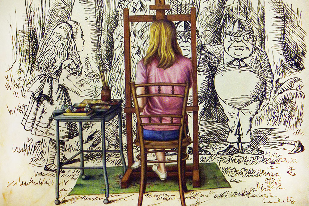 Dibujante y grabadora, observadora aguda de línea plácida, sutil, encantadora,Carletti imaginó en sus obras un mundo fantástico, bello y poético. Esto pudo verse especialmente en su serie dedicada a Alicia en el País de las Maravillas. Expuesta en la galería Holz hace algunos años (entre otros lugares), allí la artista había desplegado un solo capítulo del libro de Alicia, en el que los personajes se sueñan entre sí. El sombrerero, el gusano, el conejo, las flores gigantes y la propia niña-protagonista de abundantes y pesados cabellos rubio-ceniza, se interrelacionan en escenas complejas llenas de vuelo, trazos y color. Llevadas a tamaño grande –cada obra tenía al menos un metro y medio- animales, vegetales, humanos y Alicia se miraban absortos, rodeados de bosques, rindiéndose a la primavera.